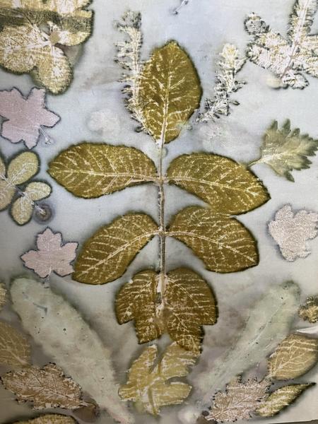 Composez des motifs sur vos coupons de soie en disposant les éléments végétaux selon vos envies et vos inspirations.