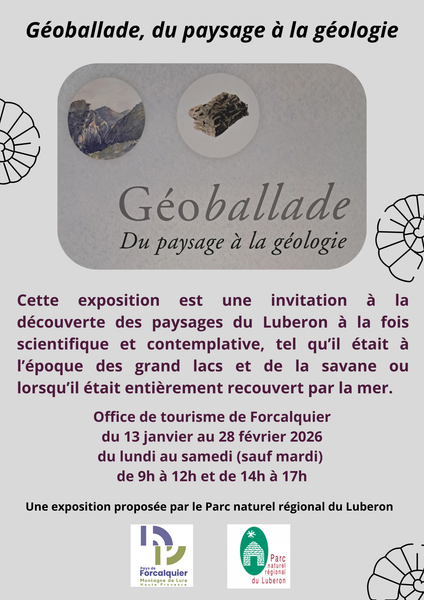 Cette exposition est une invitation à la découverte des paysages du Luberon à la fois scientifique et contemplative, tel qu’il était à l’époque des grand lacs et de la savane ou lorsqu’il était entièrement recouvert par la mer.