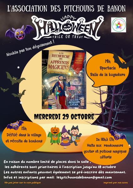 L’Association des Pitchouns de Banon a le plaisir de vous inviter à une après-midi spéciale Halloween pleine de surprises ! N’oublie pas ton déguisement!