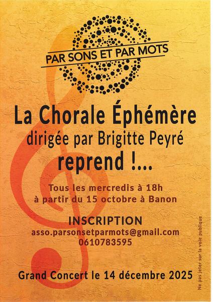 Portée par l’association Par sons et par mots, cette chorale vous donne rendez-vous tous les mercredi à 18h, à partir du 15/10 pour préparer un grand concert qui aura lieu cette année le 14 décembre 2025.