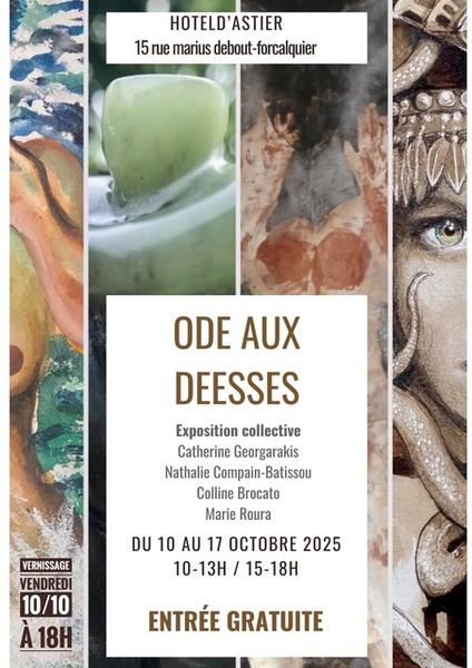 Quatre artistes: Colline Brocato, Nathalie Compain Batissou, Catherine Georgarakis et Marie Roura présentent un dialogue entre plusieurs archétypes féminins et mythes du féminin sacré, symboles de l’héritage inconscient de la place des femmes dans notre société, avec une vision contemporaine de la mythologie primitive et de l’antiquité classique.