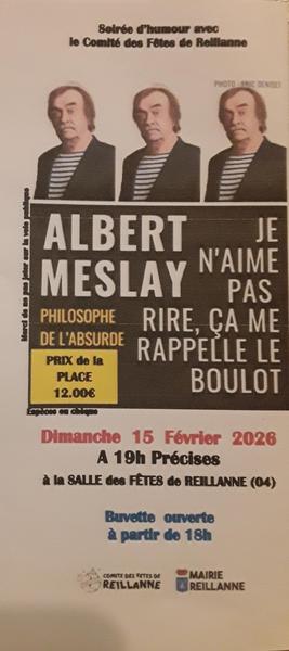 Soirée dédiée à l’humour. Albert MESLAY est un humoriste reconnu, il se produit notamment beaucoup sur Paris.