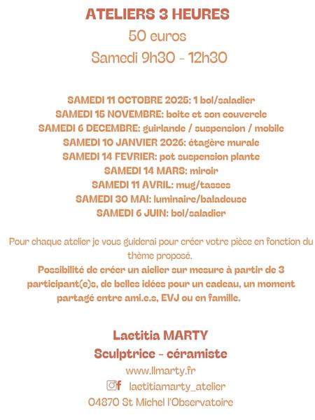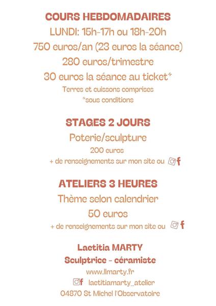 L’Atelier Céramique vous propose différentes formules : COURS hebdomadaires – STAGE 2 jours – AATELIERS 3 heures.