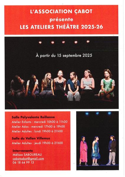 L’association ÇABOT vous propose différents Ateliers Théâtre pour tous les âges.